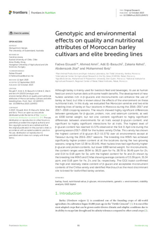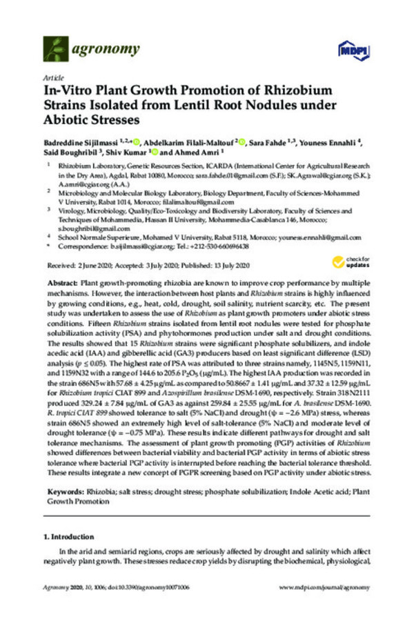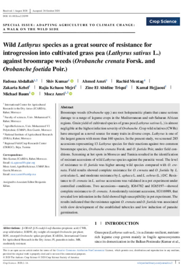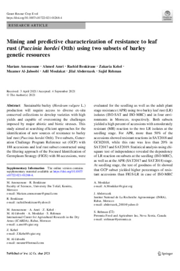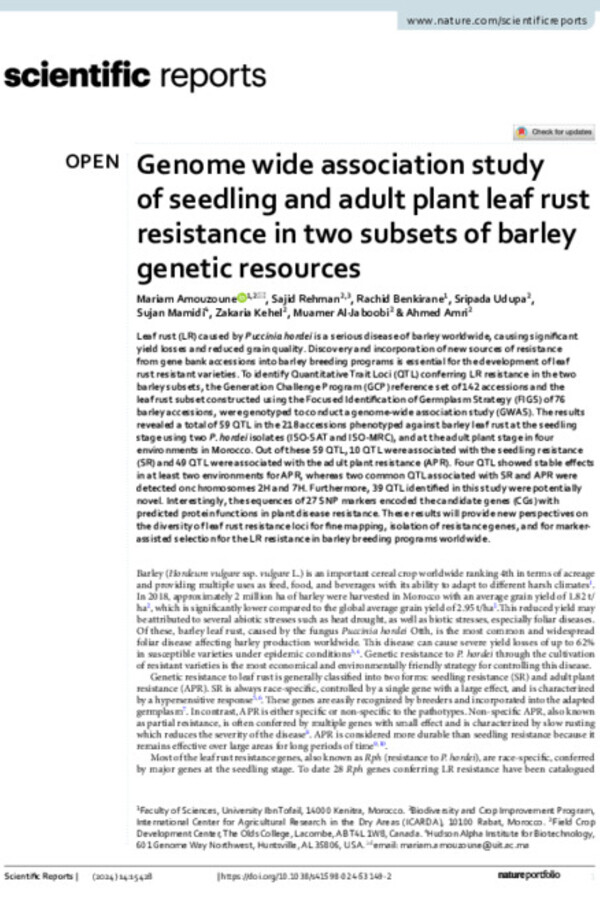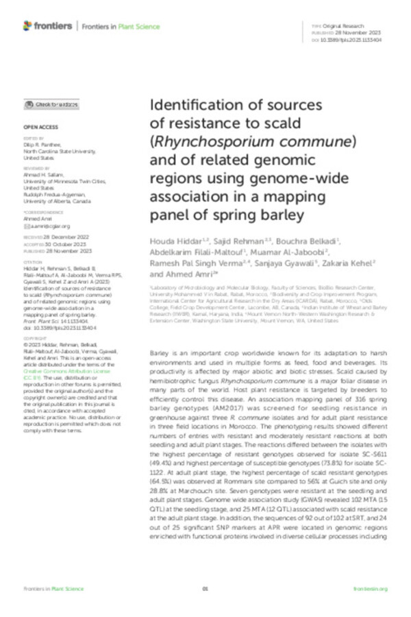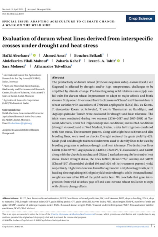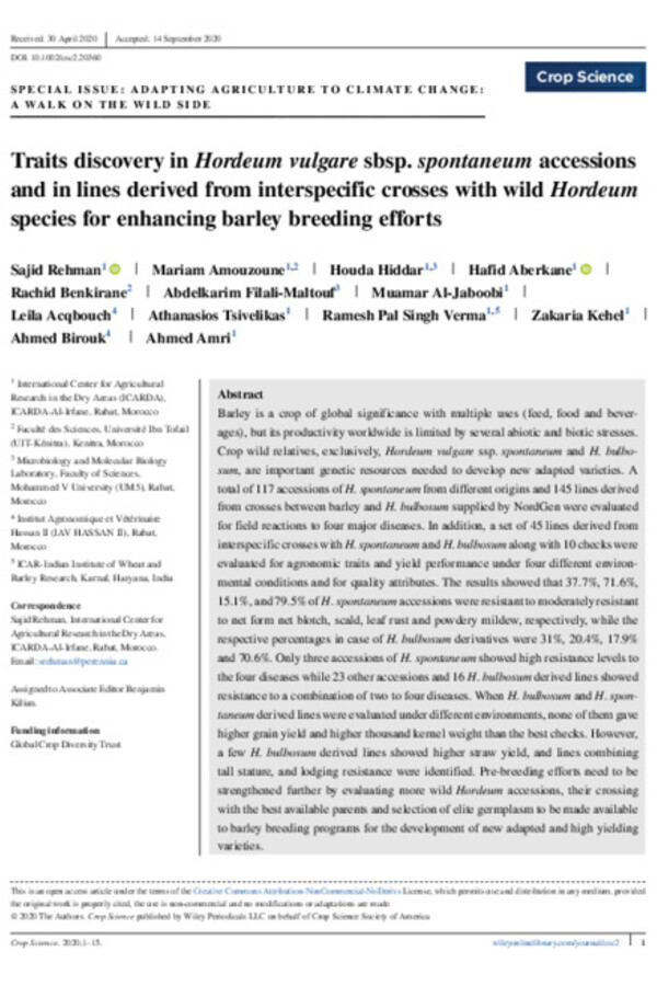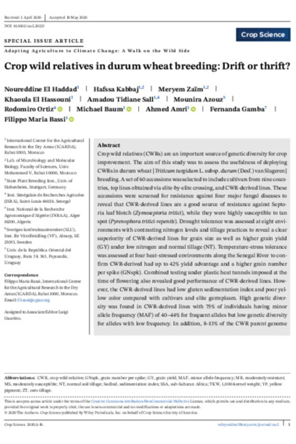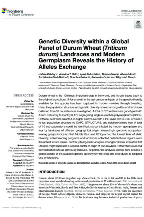Dr. Amri earned his Ph.D. in genetics and plant breeding from Kansas State University in 1989, and received a joint master’s degree in plant breeding from the University of Minnesota and the Institut Agronomique et Vétérinaire Hassan II in Rabat, Morocco, in 1980.