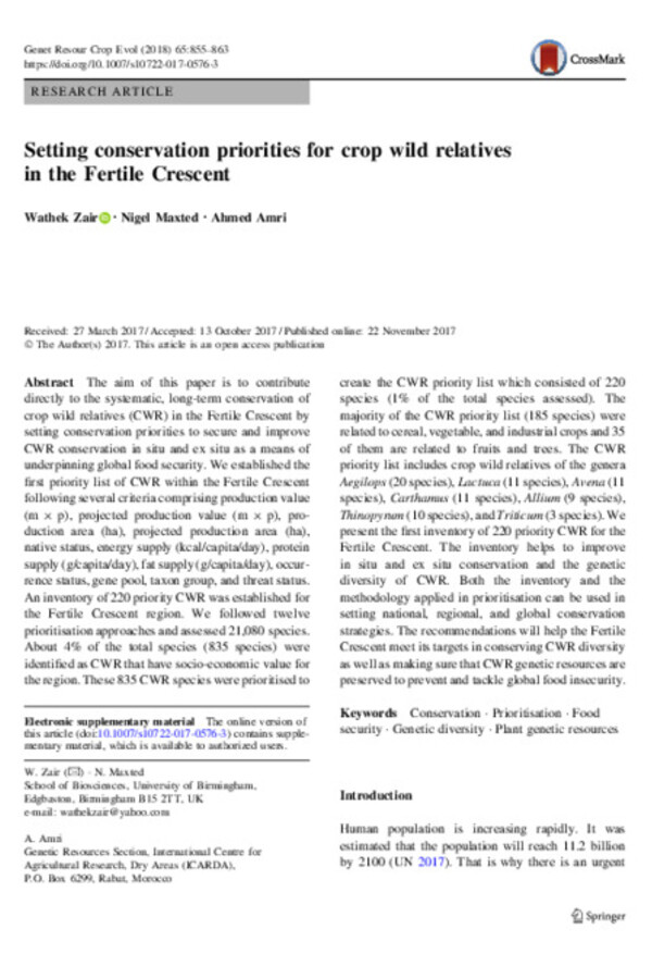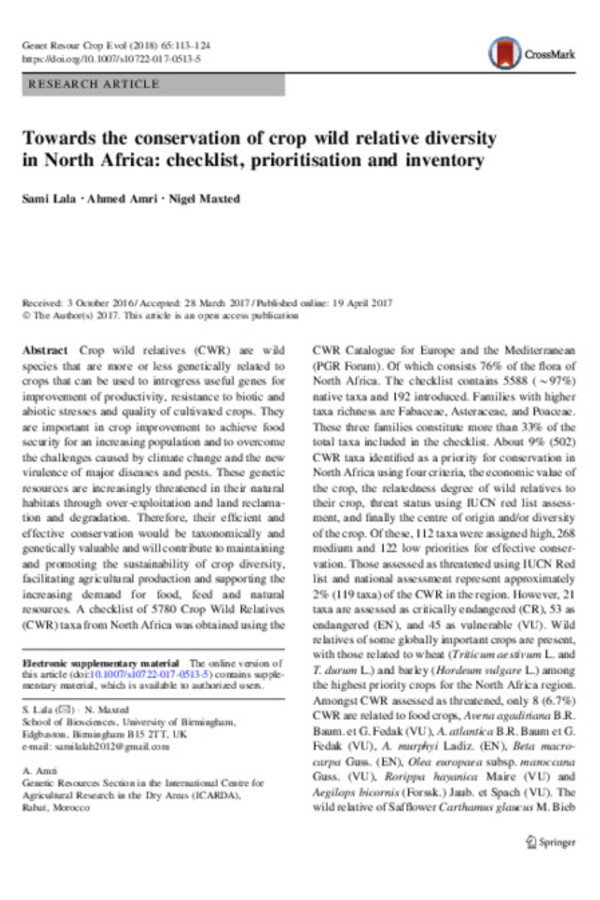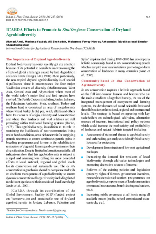 Dr. Ahmed Amri coordinates ICARDA’s Genetic Resources Section. In this role he applies best practices for the conservation of dryland agrobiodiversity and contributes to pre-breeding efforts. His current research interests cover breeding, including participatory variety selection, and gap analysis for ex situ and in situ conservation of genetic resources.