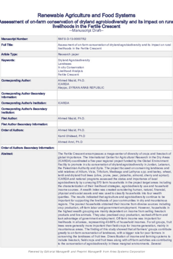 Prior to joining ICARDA, Dr. Amri worked as a cereal breeder at the Institut National de la Recherche Agronomique in Morocco for 20 years where he released a total of 20 varieties. He joined ICARDA in 1999 to coordinate the West Asia Project on the Conservation of Dryland Agrobiodiversity, and subsequently served as regional coordinator for West Asia (2001 and 2008).