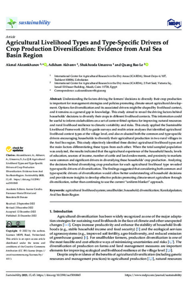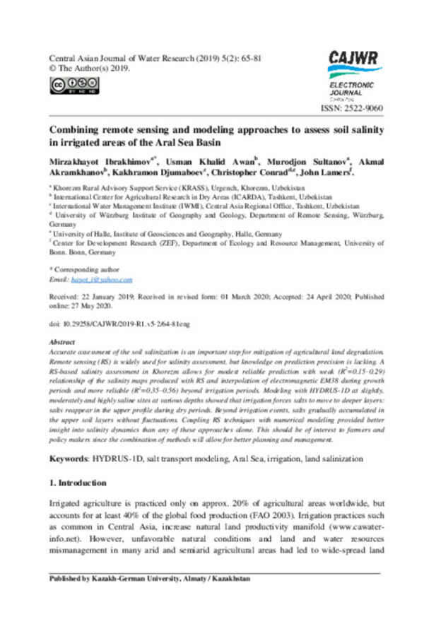 Akmal Akramkhanov is a senior scientist specializing in sustainable land management, with over 20 years of experience across Central Asia, the Caucasus, and countries including Moldova, Morocco, Sudan, and Egypt. His work focuses on the intersection of land degradation, climate resilience, and sustainable agriculture, with a strong emphasis on turning scientific knowledge into operational and policy-relevant solutions.