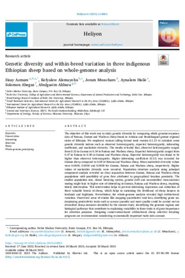 Genetic diversity and within-breed variation in three indigenous Ethiopian sheep based on whole-genome analysis