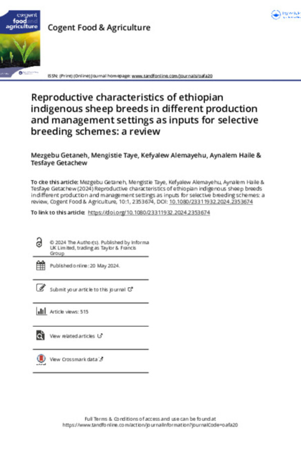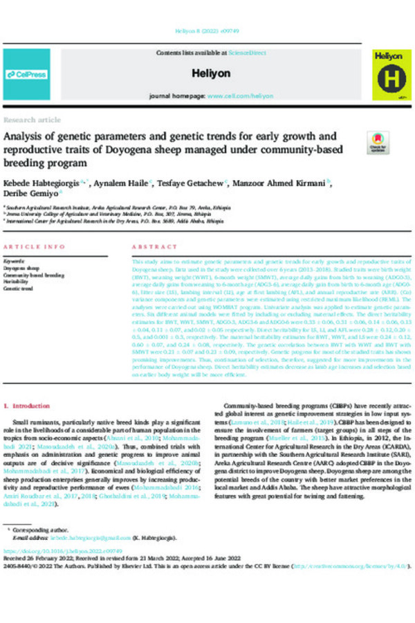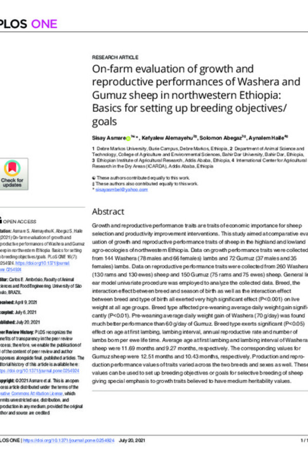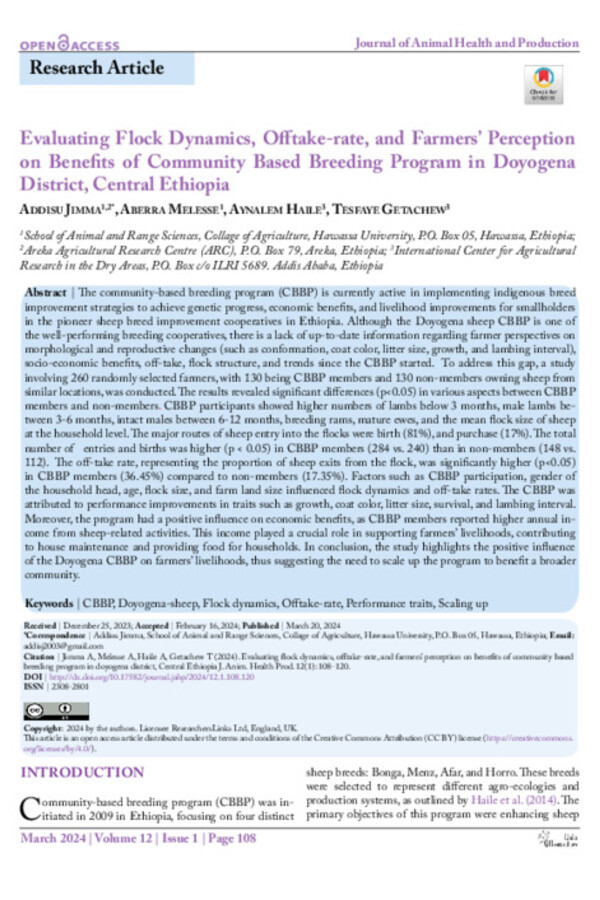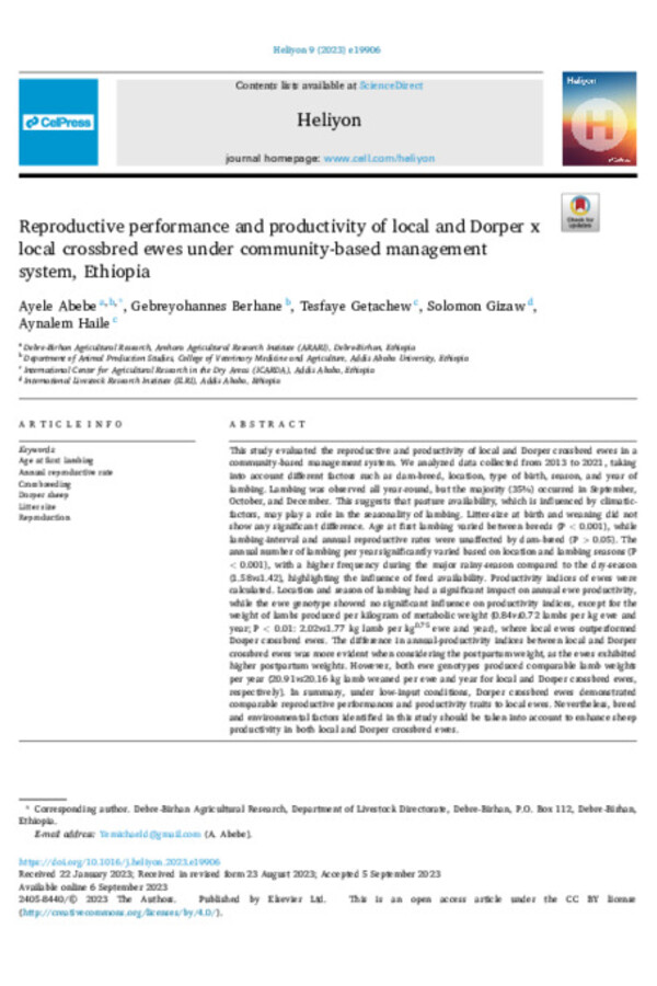 Reproductive performance and productivity of local and Dorper x local crossbred ewes under community-based management system, Ethiopia