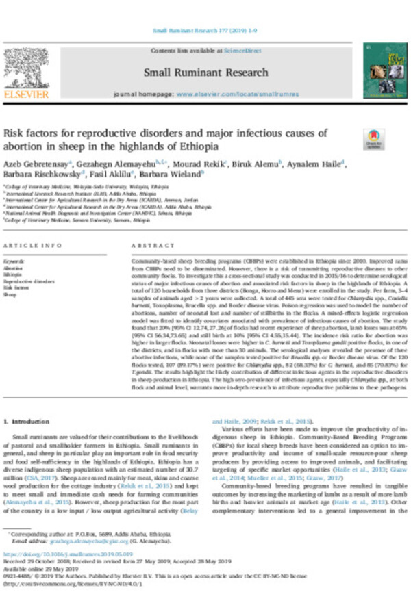 Risk Factors for Reproductive Disorders and Major Infectious Causes of Abortion in Sheep in the Highlands of Ethiopia