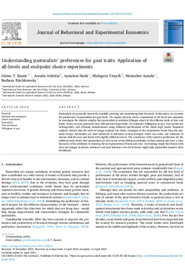 Understanding pastoralists’ preferences for goat traits: Application of all-levels and end-point choice experiments