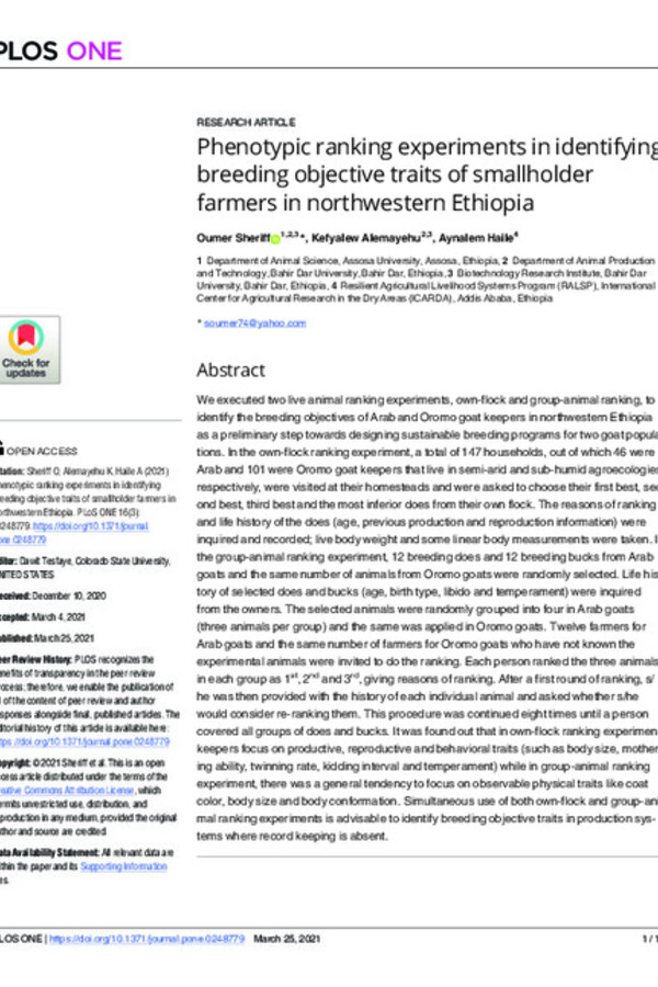 Phenotypic ranking experiments in identifying breeding objective traits of smallholder farmers in northwestern Ethiopia