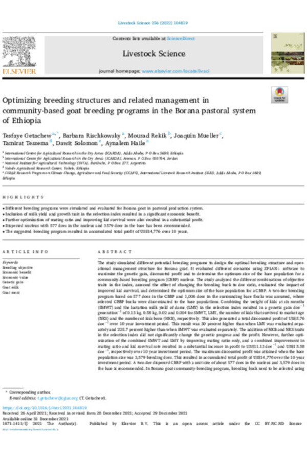 Genetic and economic evaluation of alternative breeding schemes for two indigenous goat populations of Ethiopia