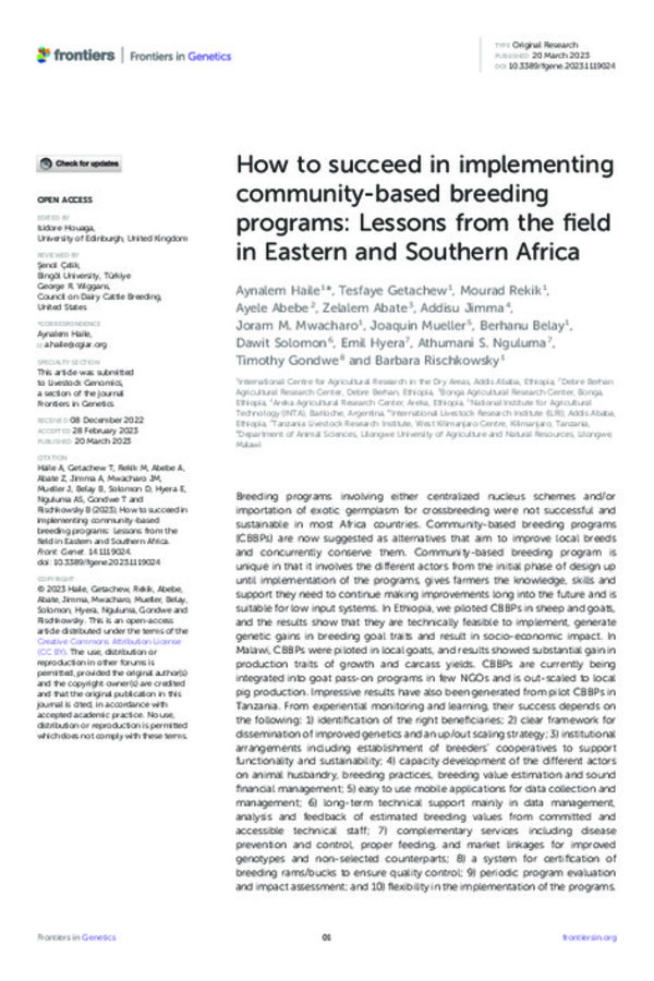How to succeed in implementing community-based breeding programs: Lessons from the field in Eastern and Southern Africa