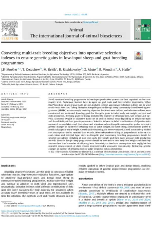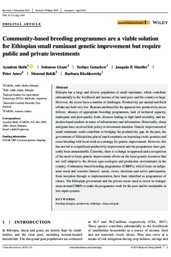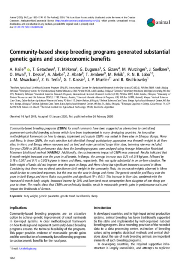 Community-based alternative breeding plans for indigenous sheep breeds in four agro-ecological zones of Ethiopia