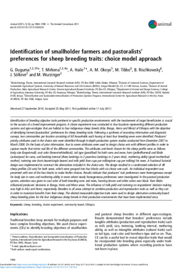 Identification of smallholder farmers and pastoralists’ preferences for sheep breeding traits: choice model approach