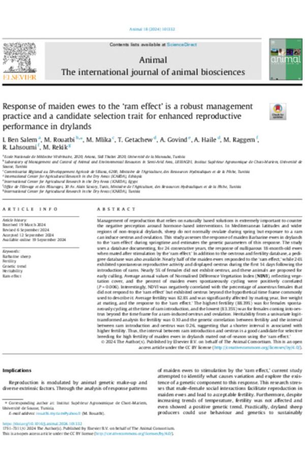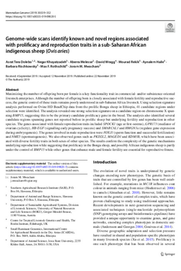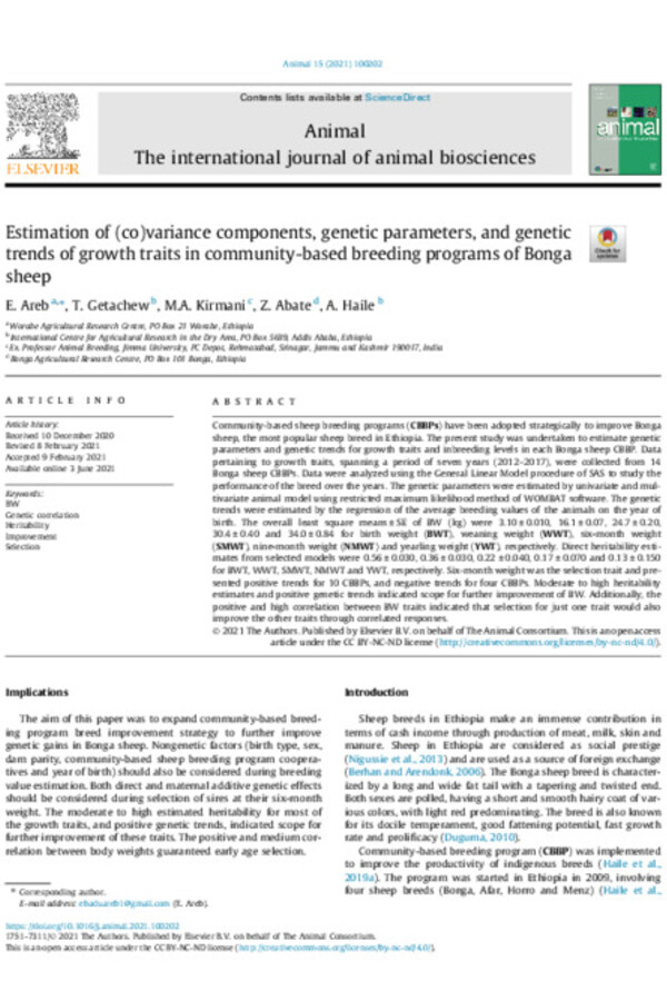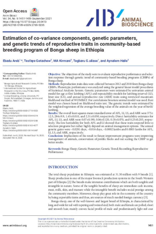 Estimates of genetic parameters and trends for reproduction traits in Bonga sheep, Ethiopia