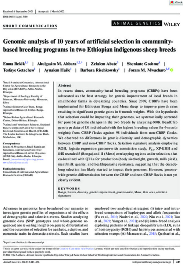 Dr. Aynalem Haile has over 25 years of research and development experience in various national and international research and development organizations. He is currently a senior scientist, focusing on small ruminants within ICARDA’s office for sub-Saharan Africa in Addis Ababa, Ethiopia. Dr. Haile has authored or co-authored more than 190 publications in peer-reviewed journals and edited proceedings. He holds a Ph.D. in animal genetics and breeding.