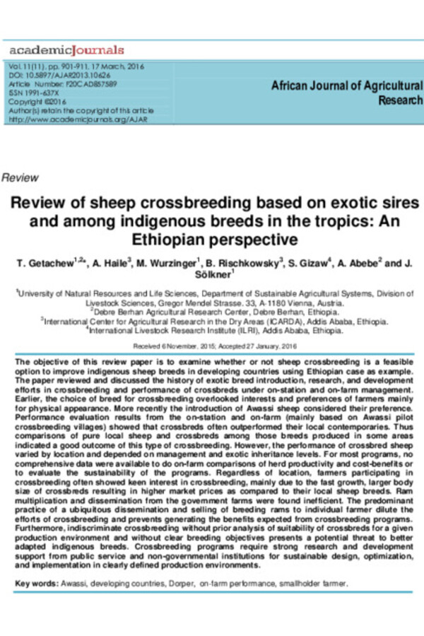 Review of sheep crossbreeding based on exotic sires and among indigenous breeds in the tropics: An Ethiopian perspective