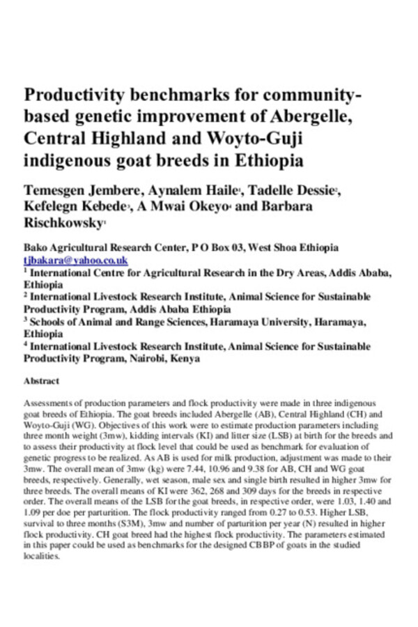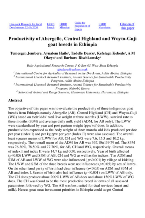 Productivity of Abergelle, Central Highland and Woyto-Guji goat breeds in Ethiopia
