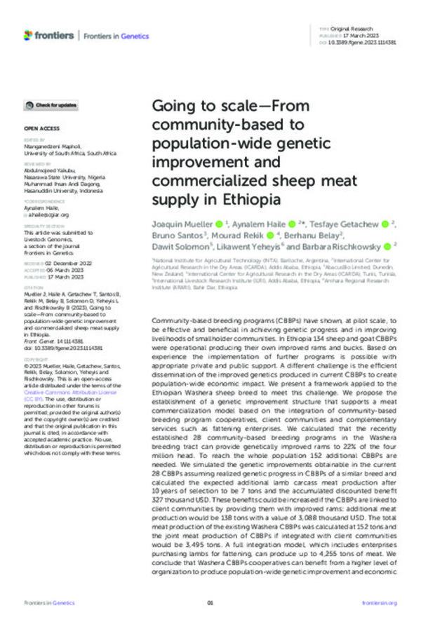 Going to scale—From community-based to population-wide genetic improvement and commercialized sheep meat supply in Ethiopia