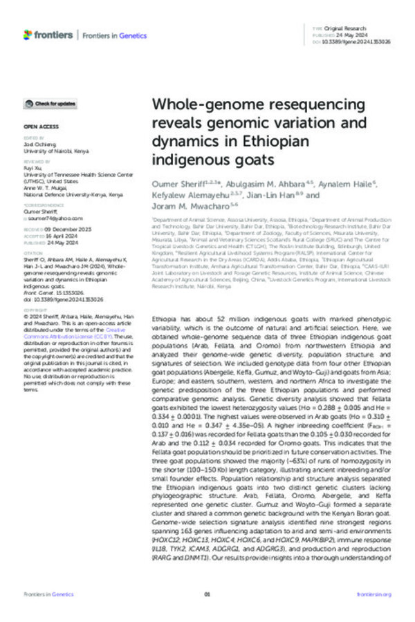 Whole-genome resequencing reveals genomic variation and dynamics in Ethiopian indigenous goats