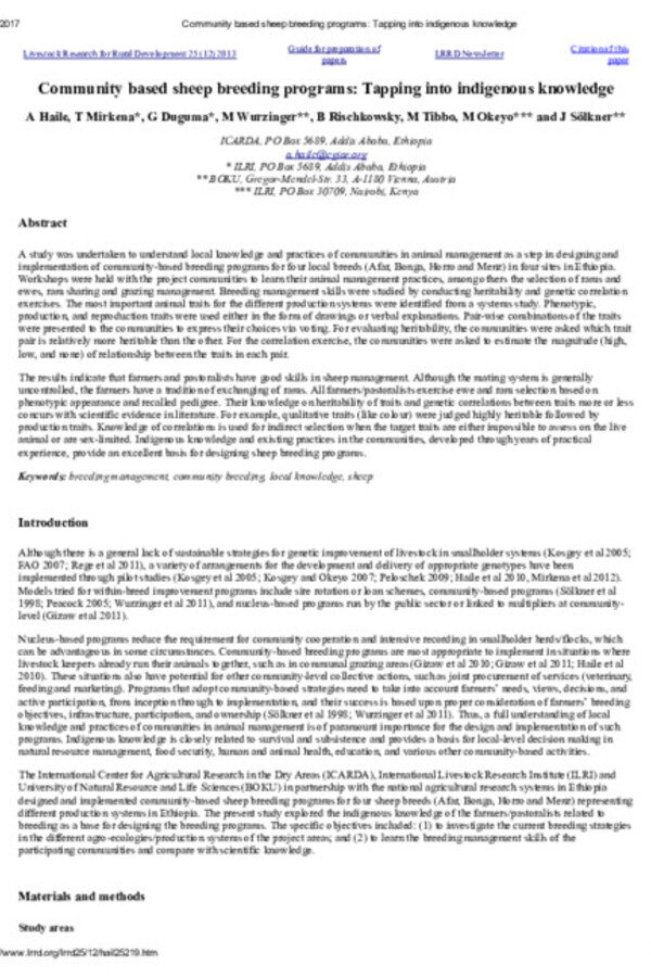 Community based sheep breeding programs: Tapping into indigenous knowledge