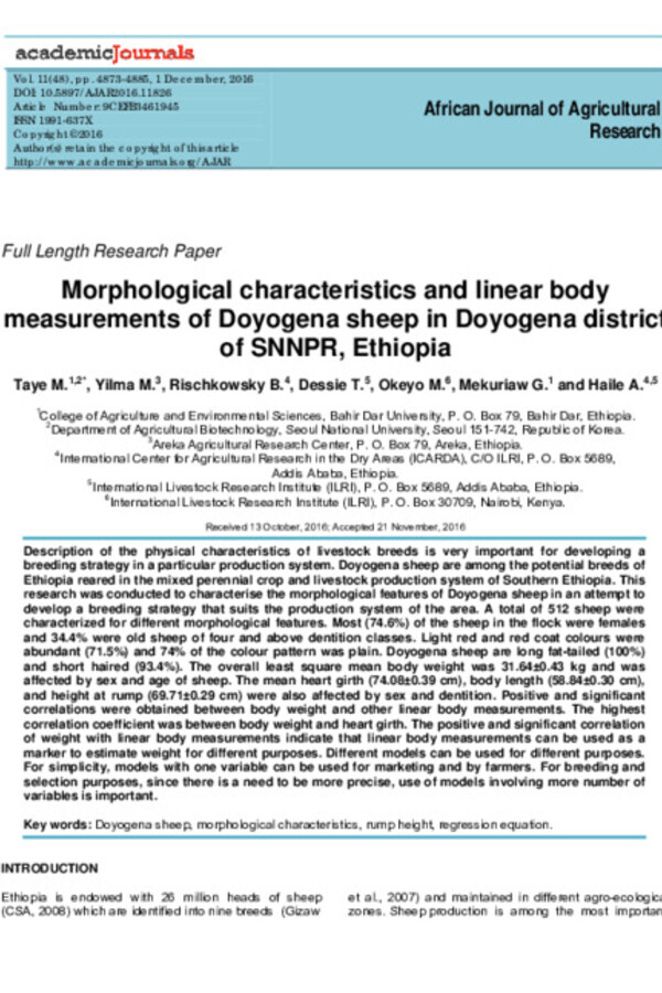 Morphological characteristics and linear body measurements of Doyogena sheep in Doyogena district of SNNPR, Ethiopia