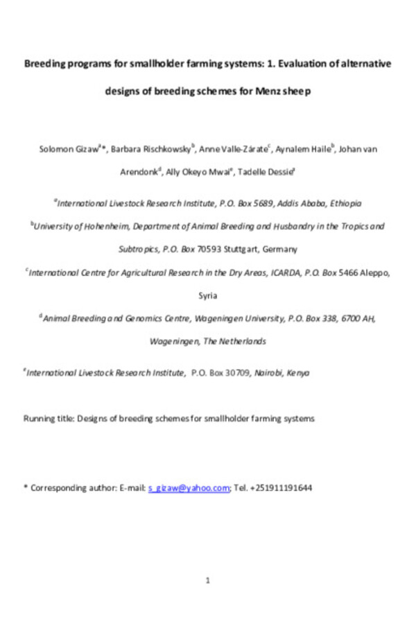 Breeding programs for smallholder sheep farming systems: I. Evaluation of alternative designs of breeding schemes
