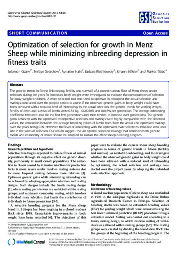 Optimization of selection for growth in Menz Sheep while minimizing inbreeding depression in fitness traits