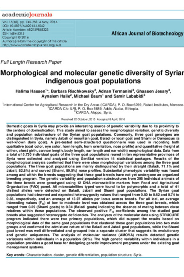 Morphological and molecular genetic diversity of Syrian indigenous goat populations