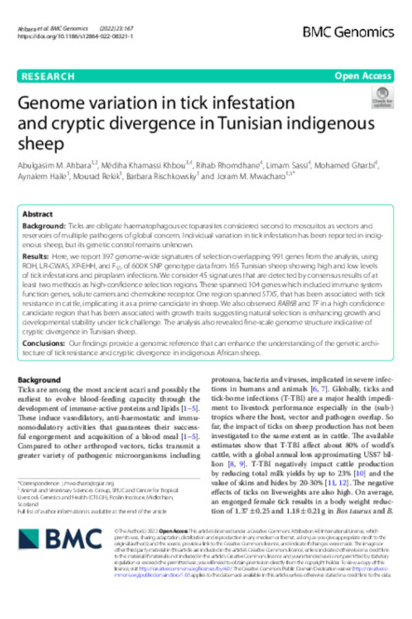 Genome variation in tick infestation and cryptic divergence in Tunisian indigenous sheep