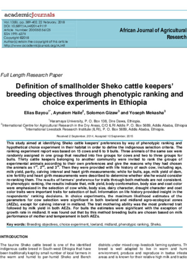 Definition of smallholder Sheko cattle keepers’ breeding objectives through phenotypic ranking and choice experiments in Ethiopia