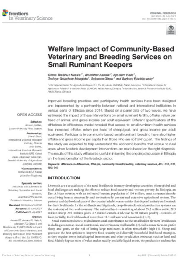 Welfare Impact of Community-Based Veterinary and Breeding Services on Small Ruminant Keepers