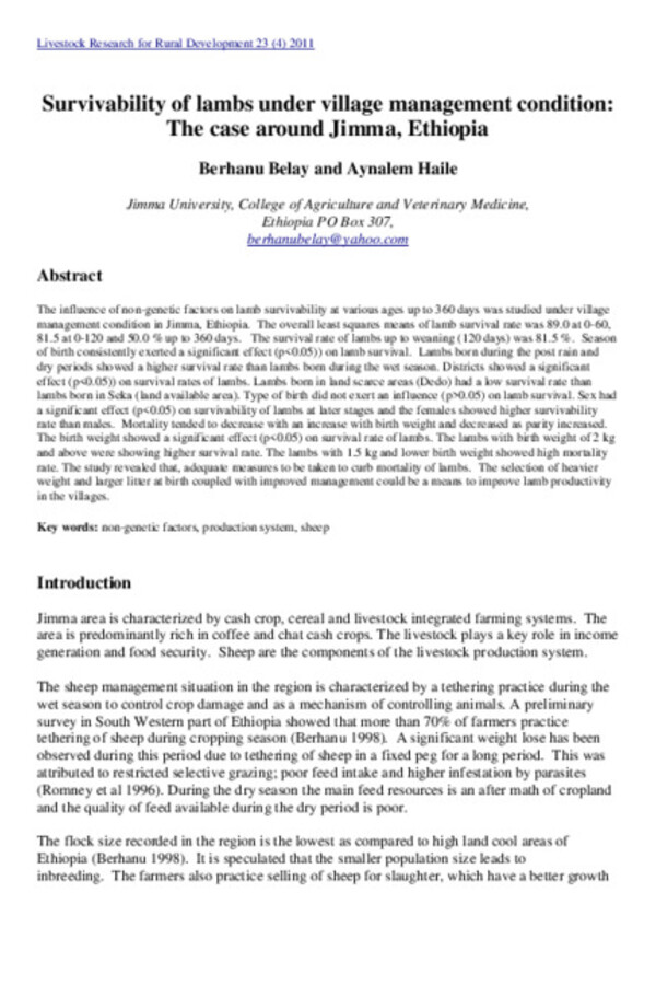 Survivability of lambs under village management condition: The case around Jimma, Ethiopia