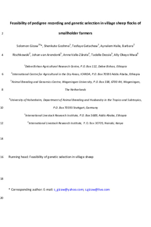 Feasibility of pedigree recording and genetic selection in village sheep flocks of smallholder farmers