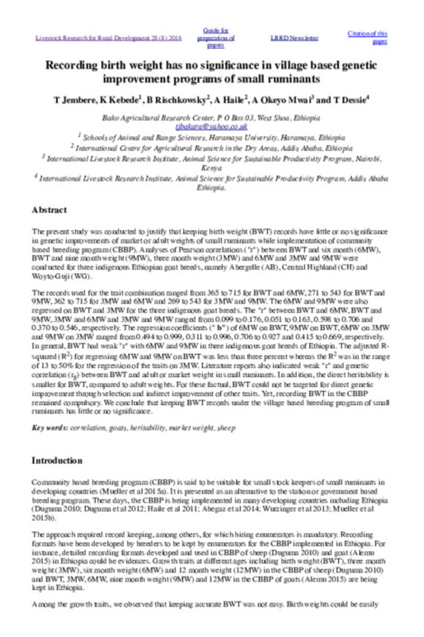 Recording birth weight has no significance in village based genetic improvement programs of small ruminants