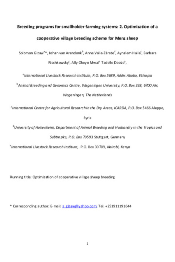 Breeding programmes for smallholder sheep farming systems: II. Optimization of cooperative village breeding schemes