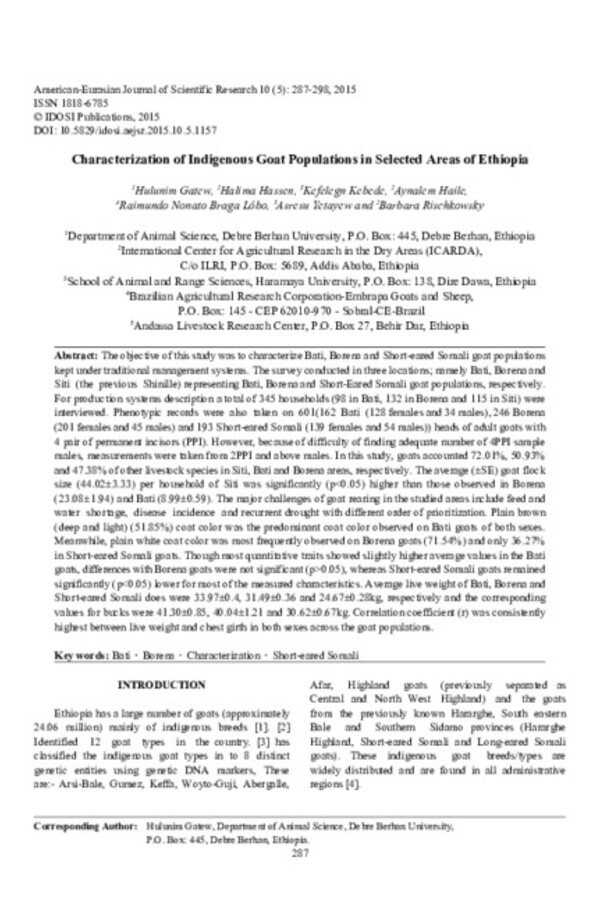 Characterization of Indigenous Goat Populations in Selected Areas of Ethiopia