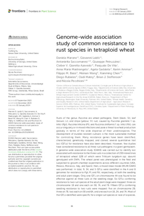 Genome-wide association study of common resistance to rust species in tetraploid wheat