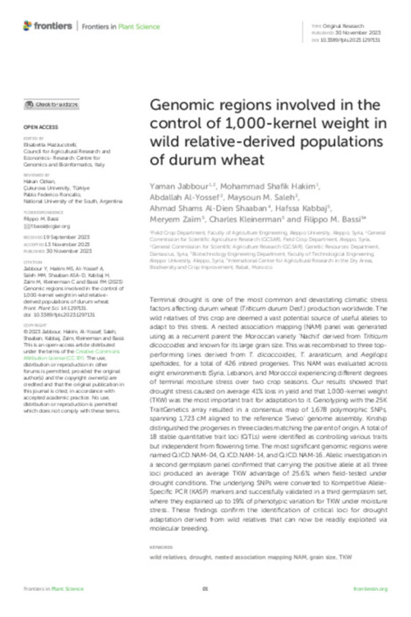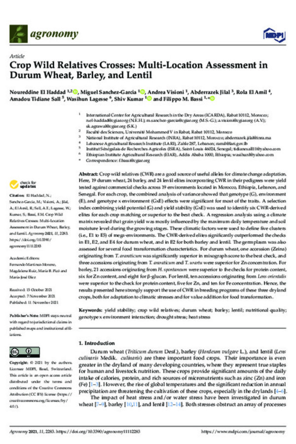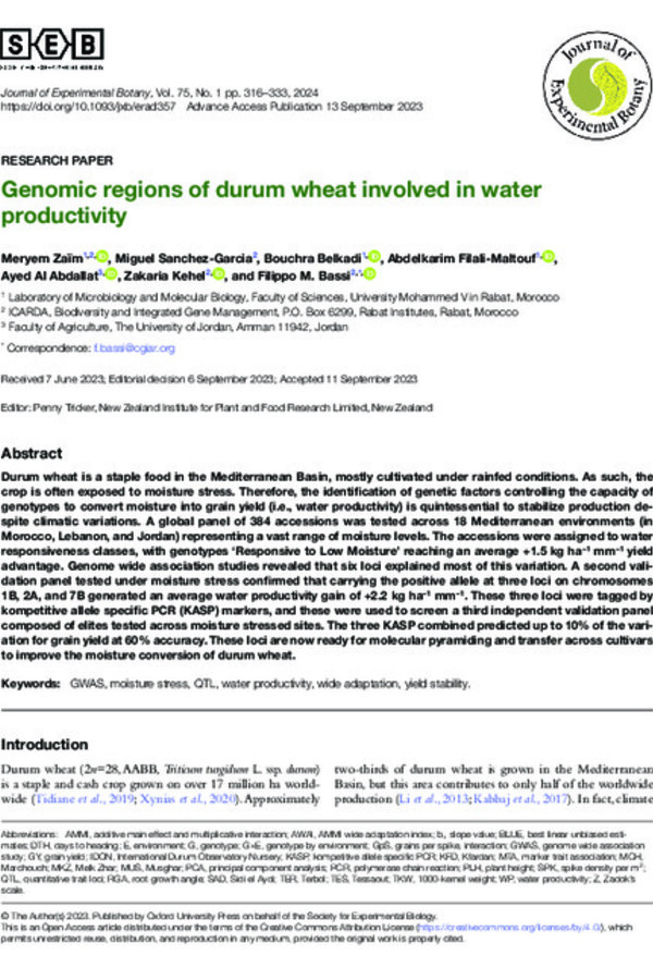 ‘Nachit’, a wild-relative-derived durum wheat resilient to climate change in Morocco