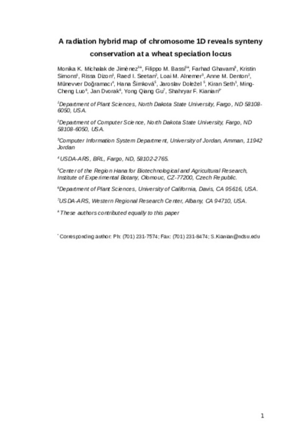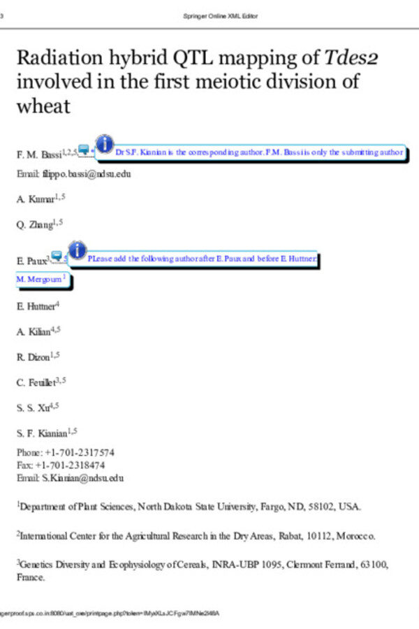 Radiation hybrid QTL mapping of Tdes2 involved in the first meiotic division of wheat