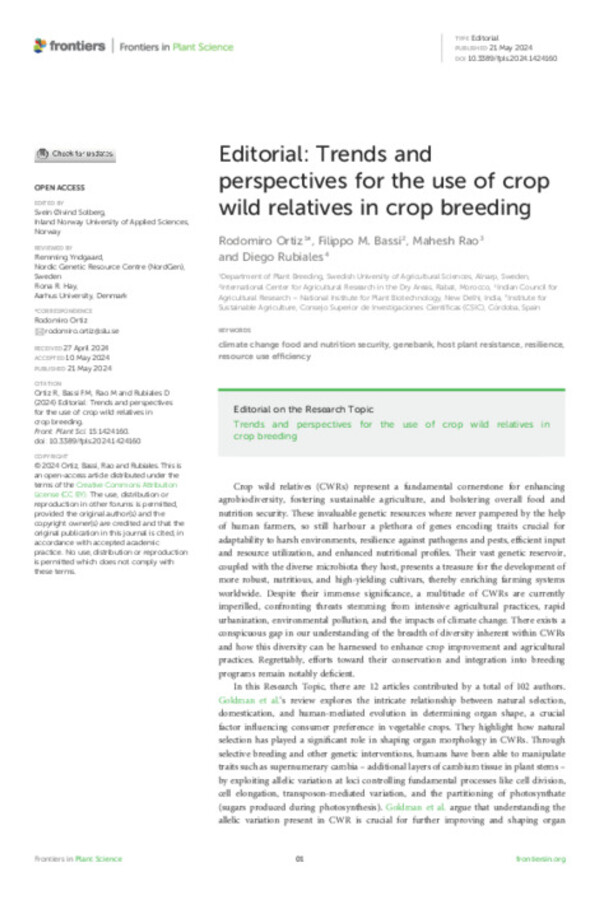 Editorial: Trends and perspectives for the use of crop wild relatives in crop breeding