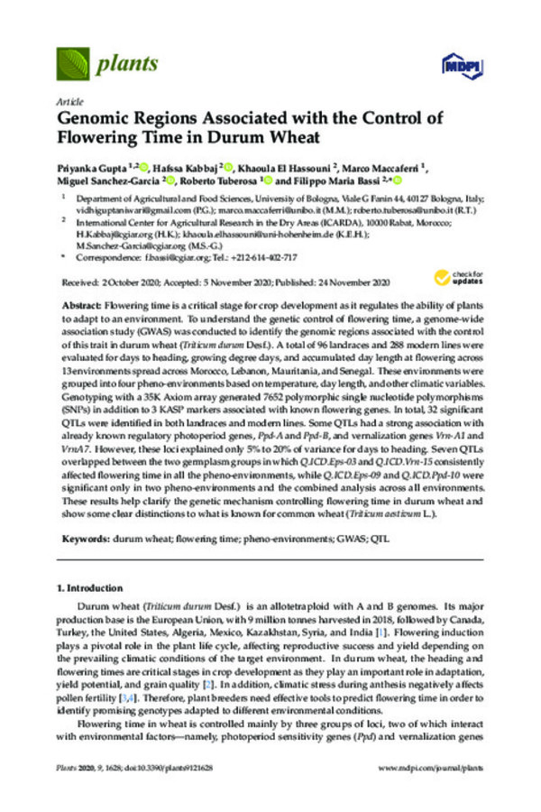 Genomic Regions Associated with the Control of Flowering Time in Durum Wheat