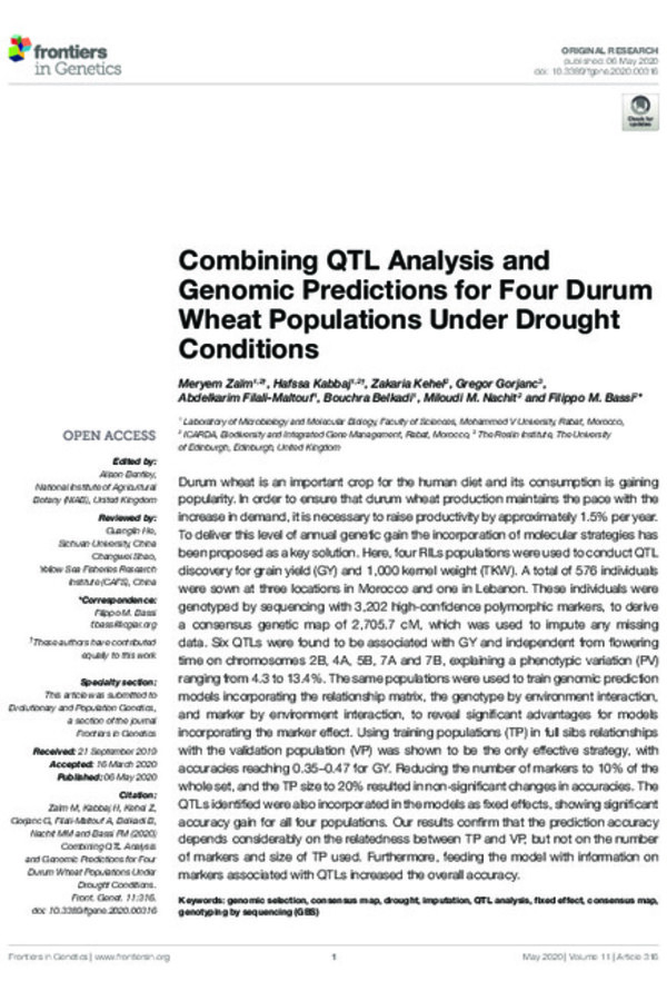 Combining QTL Analysis and Genomic Predictions for Four Durum Wheat Populations Under Drought Conditions