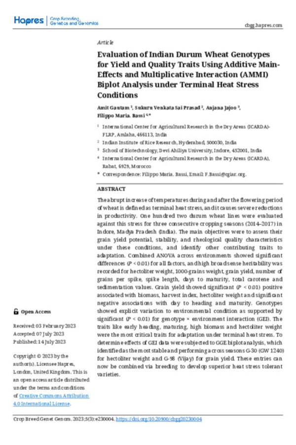 Filippo Bassi is a senior scientist leading ICARDA's Durum Wheat Breeding Program, which aims to deliver superior varieties with increased yields against a backdrop of rapid climate change. He also works in Ethiopia, India, Senegal, Mauritania, Lebanon, Algeria, Tunisia, and several other countries, to improve local scientists’ capacity to innovate.