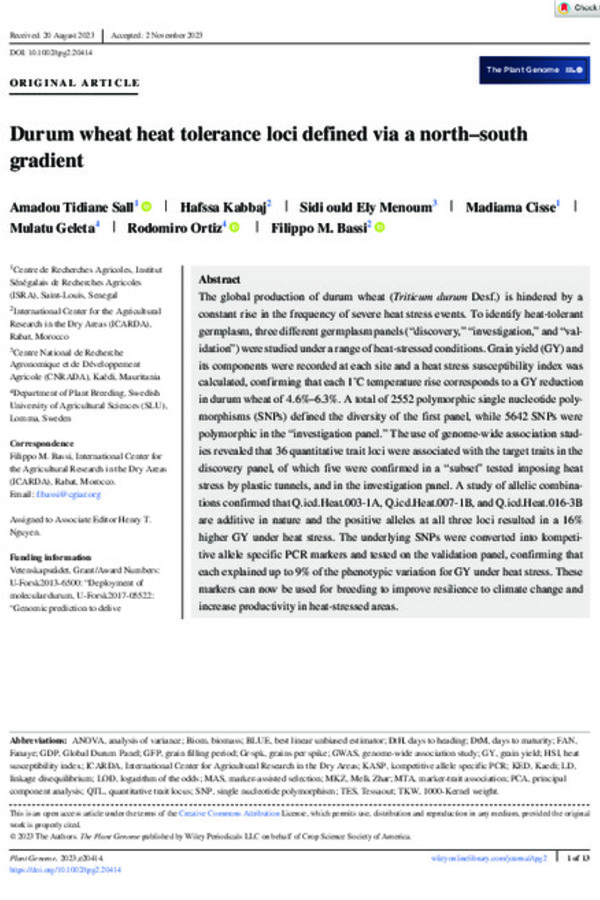 ‘Amina’, ‘Dioufissa’, and ‘Haby’: Heat tolerant durum wheatcultivars adapted to the Senegal River Basin