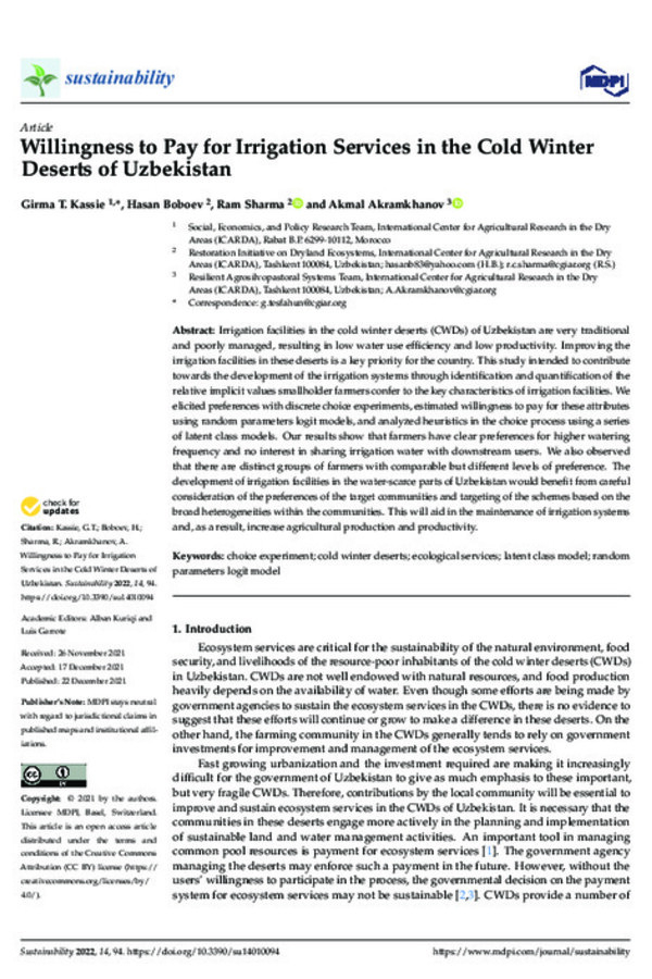 Willingness to Pay for Irrigation Services in the Cold Winter Deserts of Uzbekistan