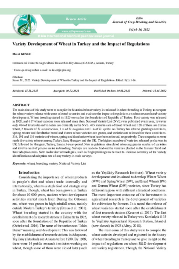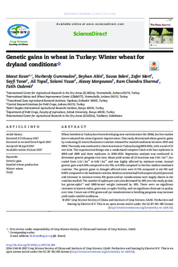 Dr. Keser joined ICARDA’s Turkey office in 2007 where he serves as country manager and breeder for the International Winter Wheat Improvement Program (IWWIP). The material developed in IWWIP has been distributed to over 100 collaborators in 40 countries. Dr. Keser regularly contributes to peer-reviewed journals and conference proceedings