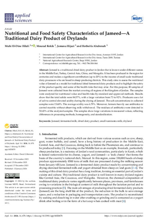 Nutritional and Food Safety Characteristics of Jameed - A Traditional Dairy Product of Drylands