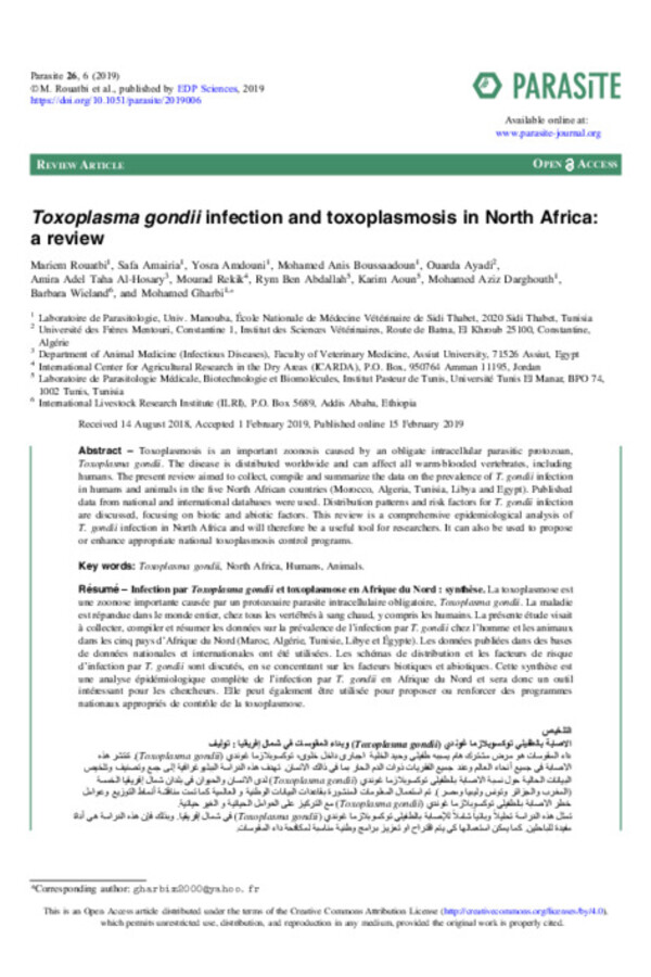 Toxoplasma gondii infection and toxoplasmosis in North Africa: a review