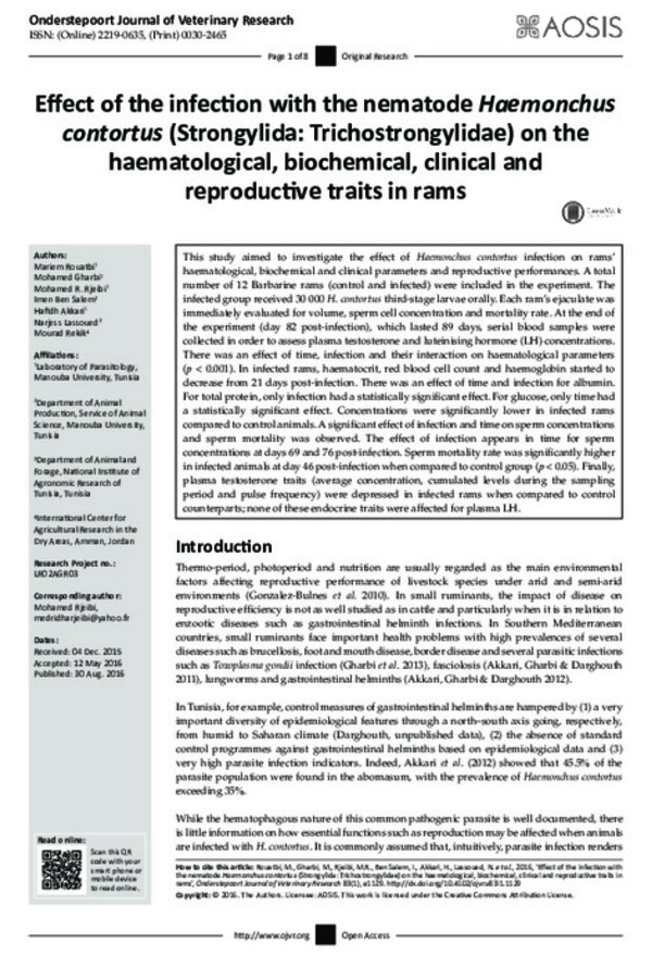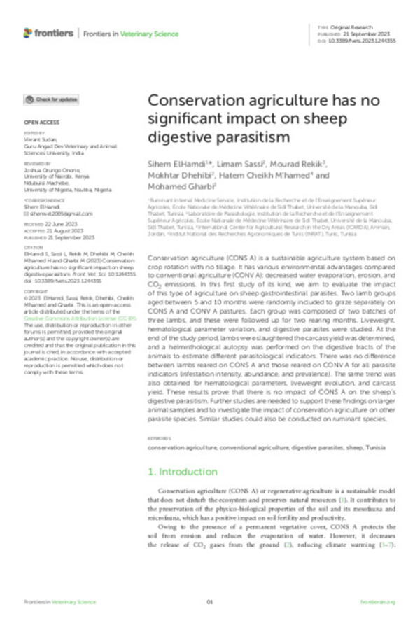 Conservation agriculture has no significant impact on sheep digestive parasitism