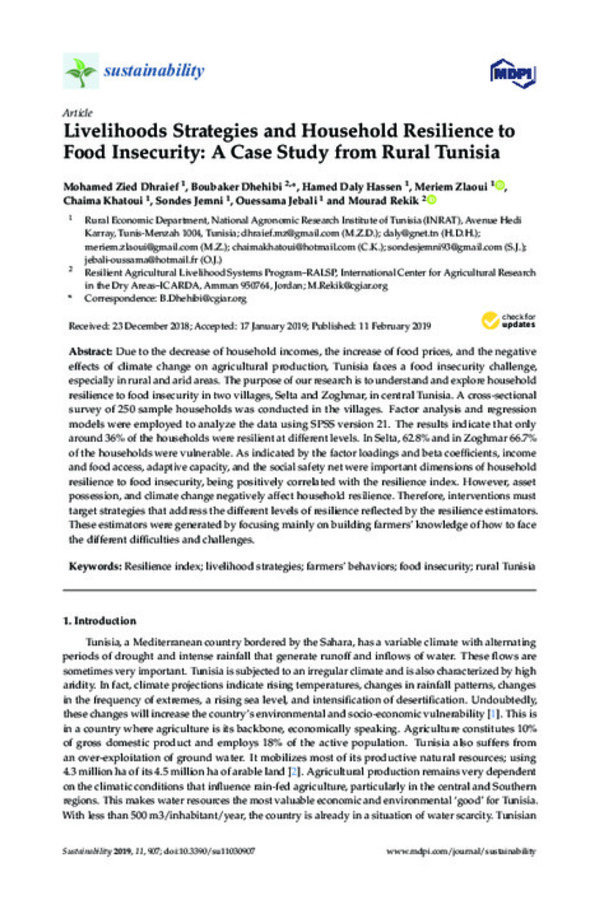 Livelihoods Strategies and Household Resilience to Food Insecurity: A Case Study from Rural Tunisia