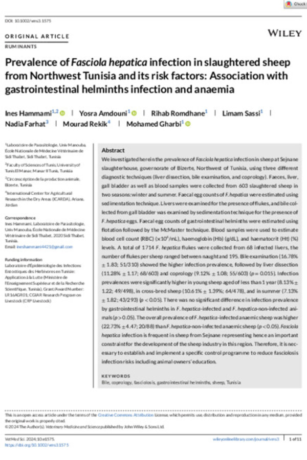 First morphometric and molecular characterization of Fasciola spp. in Northwest Tunisia