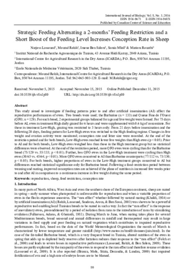 Prior to joining ICARDA, Dr. Rekik was a researcher and lecturer at several universities in Tunisia, and coordinated research-for-development projects involving multidisciplinary teams. He served as a member of the British Society of Animal Science and the FAO-CIHEAM network on sheep and goats nutrition. Dr. Rekik is author of more than 80 peer-reviewed journal publications, book chapters, and conference papers. He holds a Ph.D. in animal production from the University of Reading in the United Kingdom.