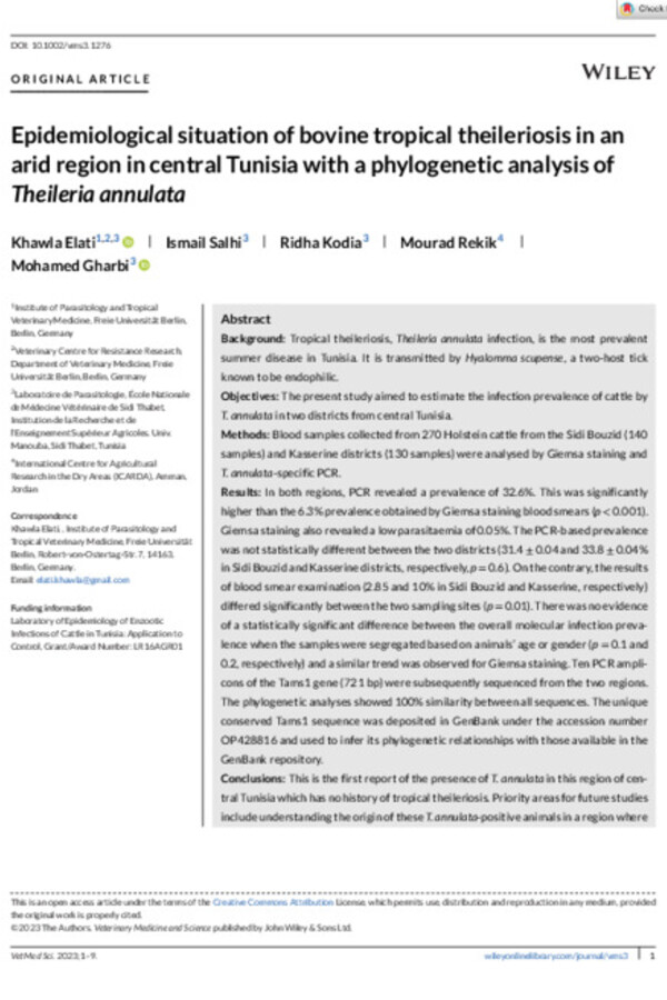 Molecular survey and genetic characterization of Anaplasma centrale, A. marginale and A. bovis in cattle from Algeria