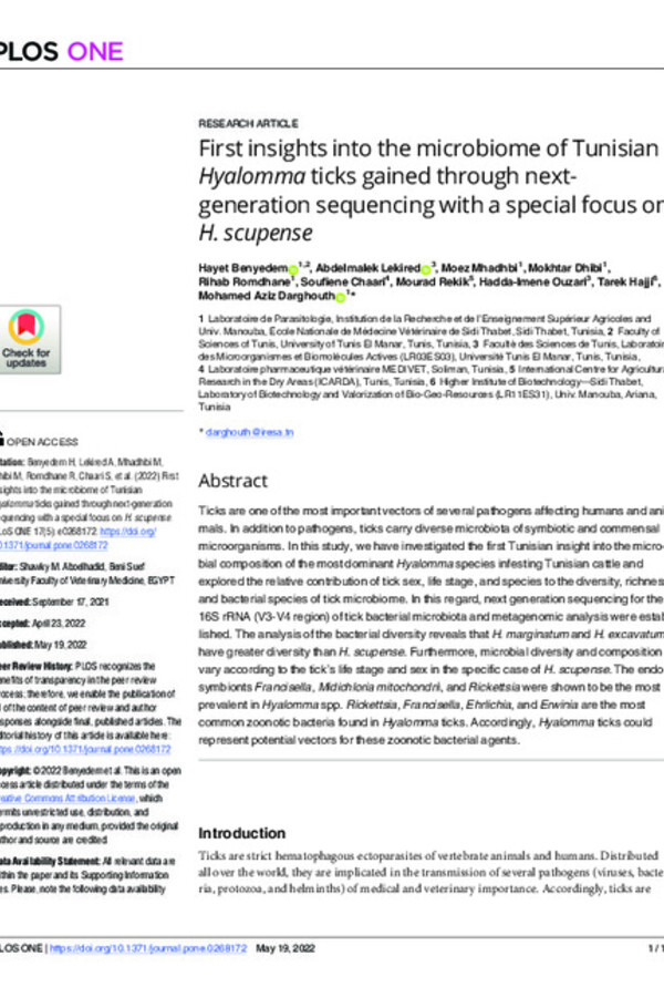 Genetic diversity of Hyalomma marginatum in Tunisia is not influenced by the bio-climate
